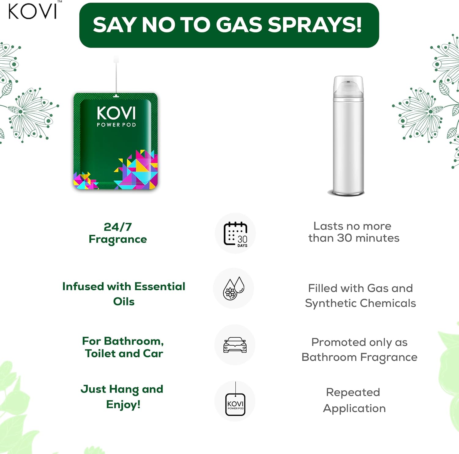 KOVI Air Fragrance Power Pods are perfect for maintaining a fresh atmosphere in any space. They are easy to hang and place, making them a practical choice for effective toilet fresheners, car air fresheners, and long-lasting fresheners for your wardrobe. With their reliable odor control and refined fragrance profile, these pods seamlessly fit into any space and deliver consistent freshness. Choose KOVI Air Fragrance Power Pods for a sophisticated, convenient, and value-packed solution to your fragrance needs.