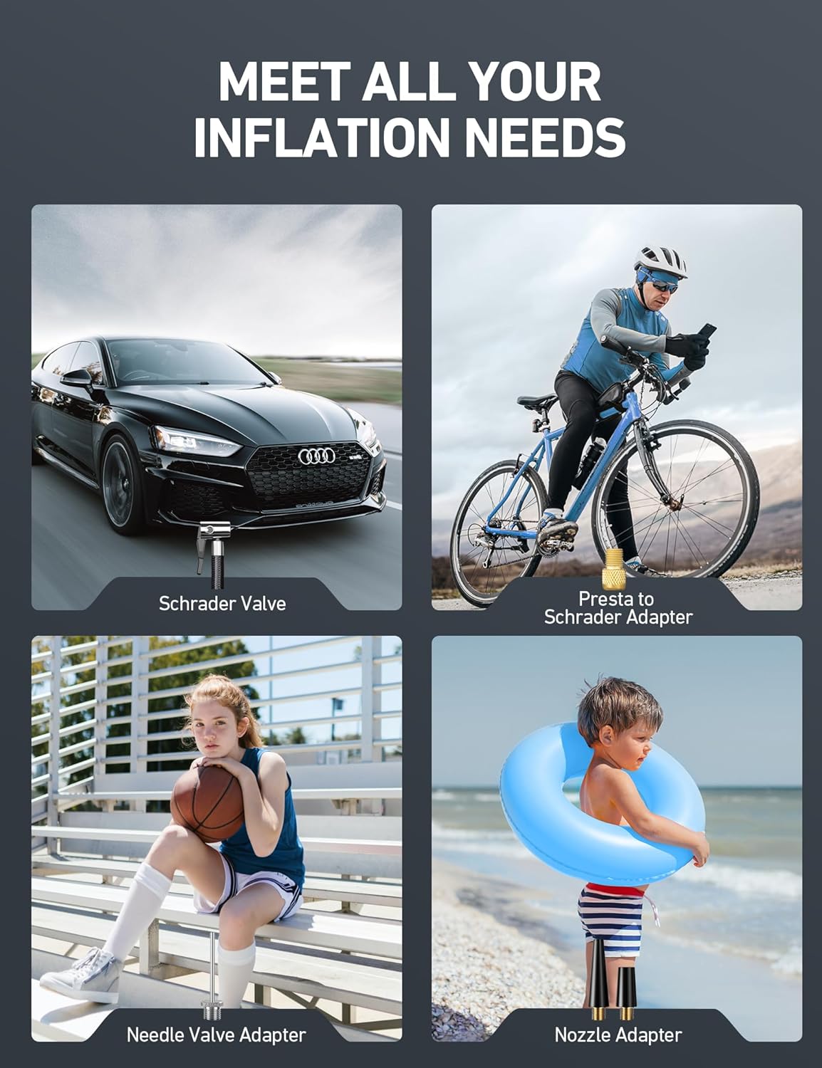 4. Universal compatibility with cars, bicycles, basketballs, swimming rings, and more