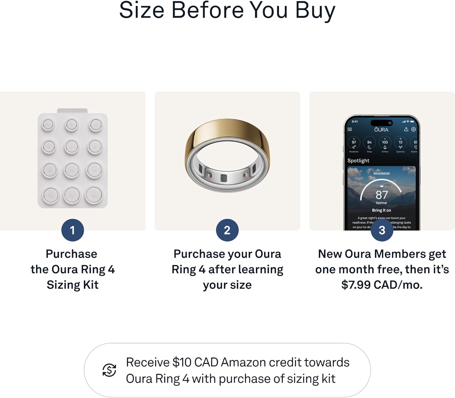The Oura Ring 4 Sizing Kit is a unique tool that allows you to determine your perfect fit before making a purchase. This sizing kit is specifically designed for smart rings and uses a special classification system to ensure you get the right size. When you use the sizing kit, you will receive a credit that can be applied to your purchase.