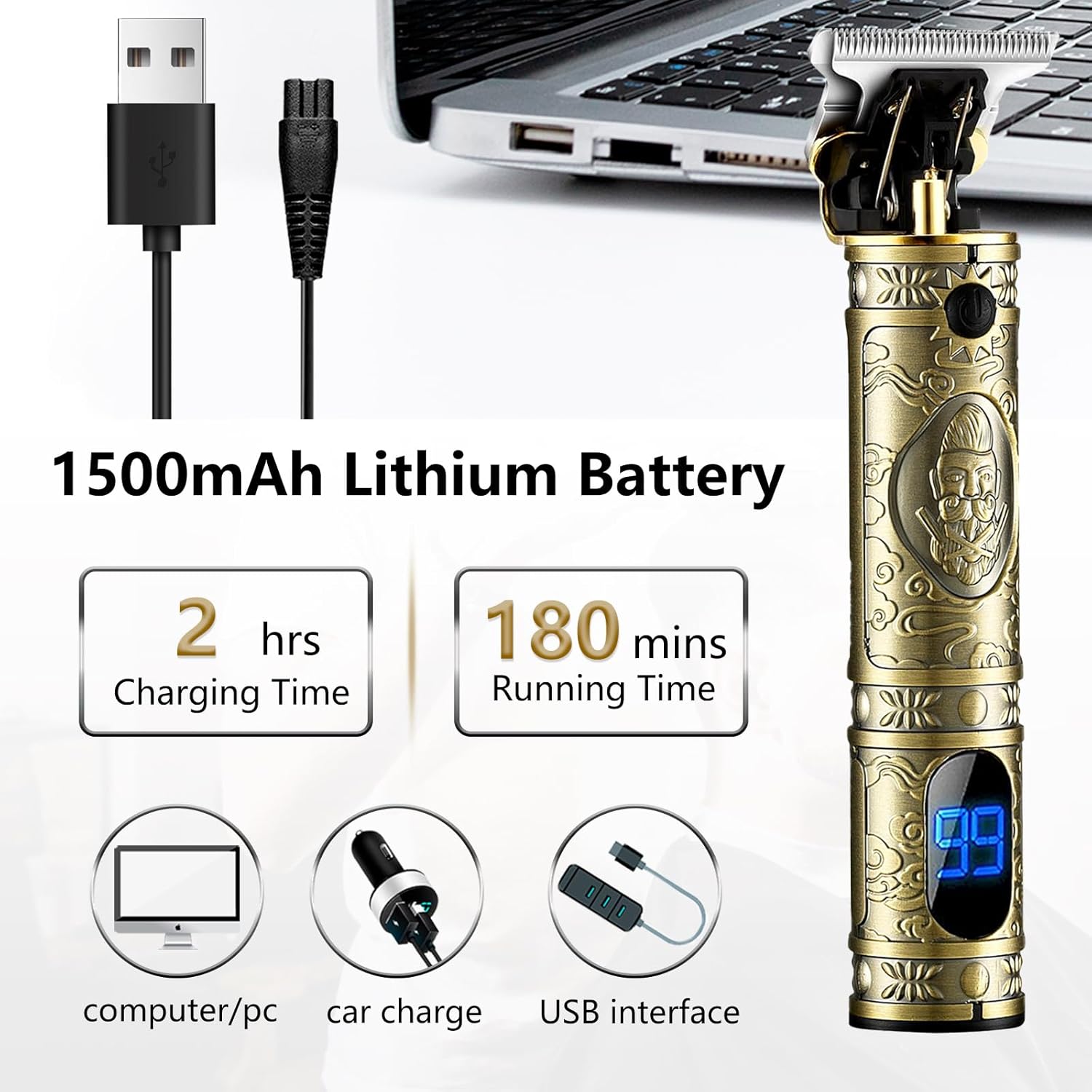 The AMULISS Professional Mens Hair Clippers Zero Gapped Cordless Hair Trimmer is a professional haircut and grooming kit designed for men. This rechargeable hair trimmer features an LED display and is designed to provide a precise and comfortable haircut.