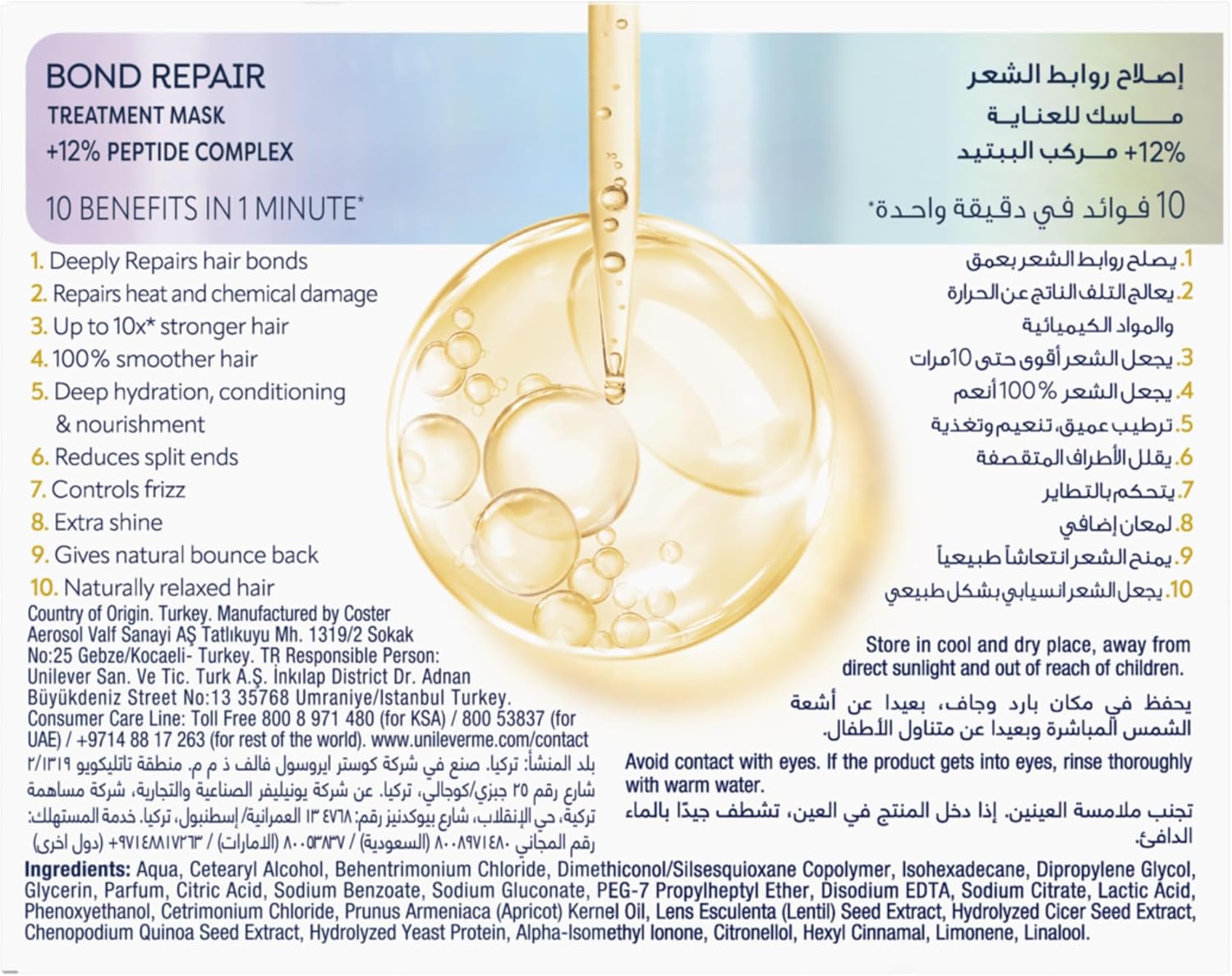 The hair mask is formulated with a patented technology that combines Bio-Protein Care and a 12% Peptide Complex to deeply nourish and repair the hair. It offers 10 transformative benefits in just one minute, including repairing hair bonds, reducing split ends, controlling frizz, and giving extra shine and natural bounce.