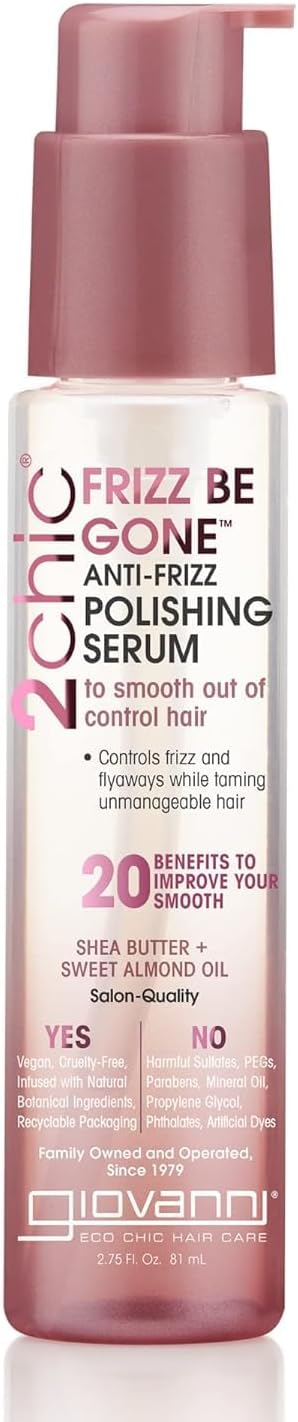 The product is from a well-known brand, Giovanni, which is committed to providing high-quality hair care products. The serum is available in a 2.75 oz size, making it a great value for the price. Overall, Giovanni 2Chic Frizz Be Gone Anti-Frizz Polishing Serum is a great option for anyone looking to improve the health and appearance of their hair.