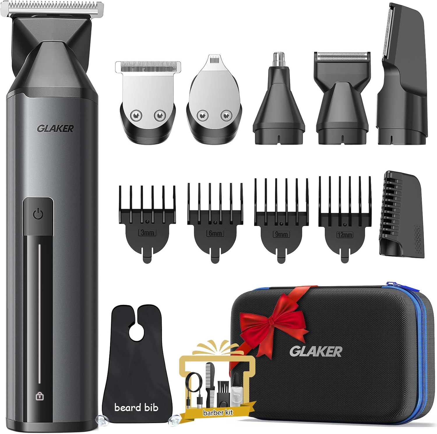 The GLAKER Professional Men's Hair Trimmer is a versatile grooming tool designed to cater to various hair trimming needs. This 6-in-1 trimmer comes equipped with a T-Blade, precision trimmer, body hair trimmer, and nose hair trimmer, making it an ideal solution for men who want to maintain their hair with ease and precision. The trimmer is also waterproof, allowing for convenient cleaning and maintenance.