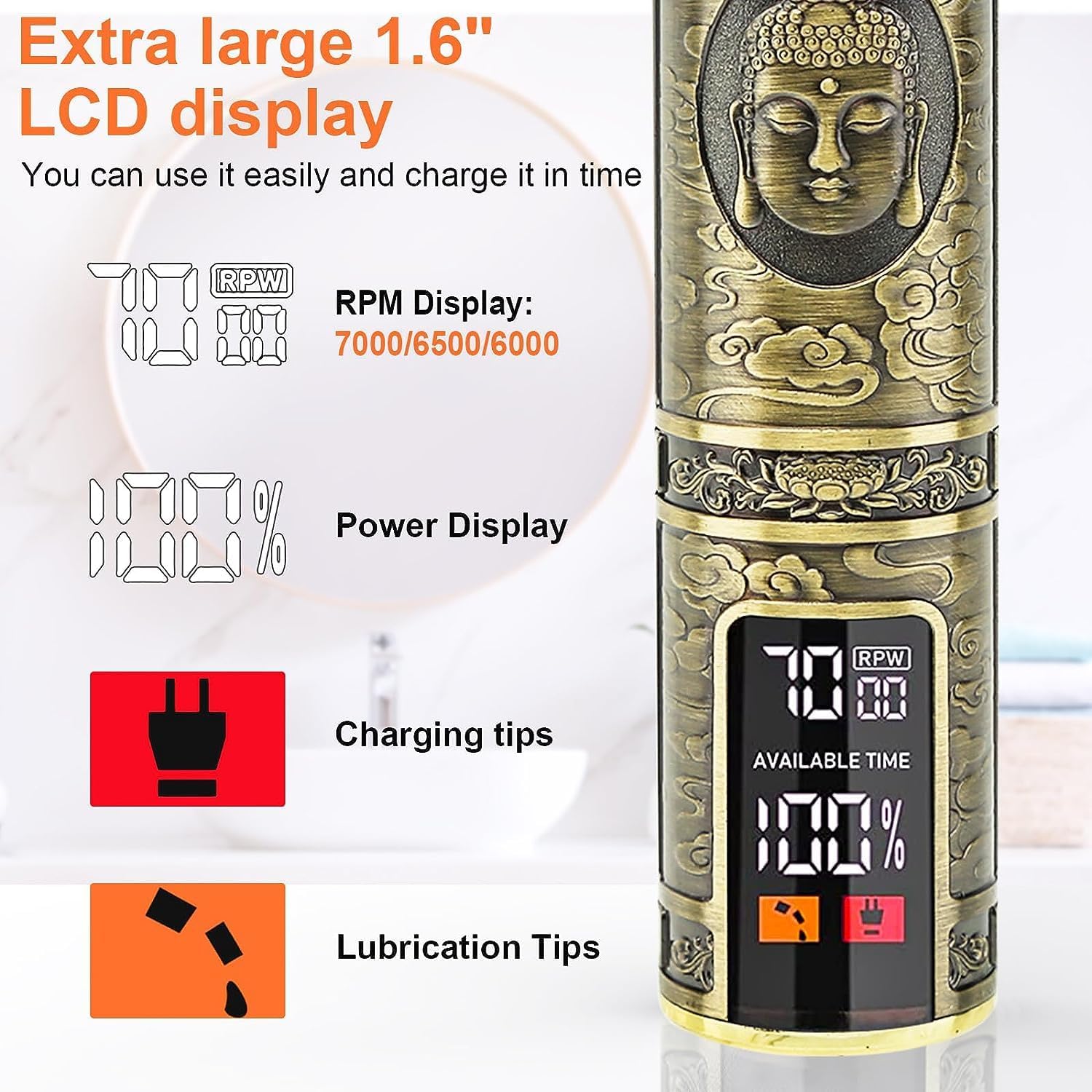 This electric beard trimmer is designed to provide a refreshing and effective grooming experience for men. With its cordless design and LCD screen, it offers a convenient and easy-to-use solution for trimming and maintaining facial hair. The sharp titanium precision T blade trimmer is perfect for achieving a precise cut and can be used for a variety of hairstyles.