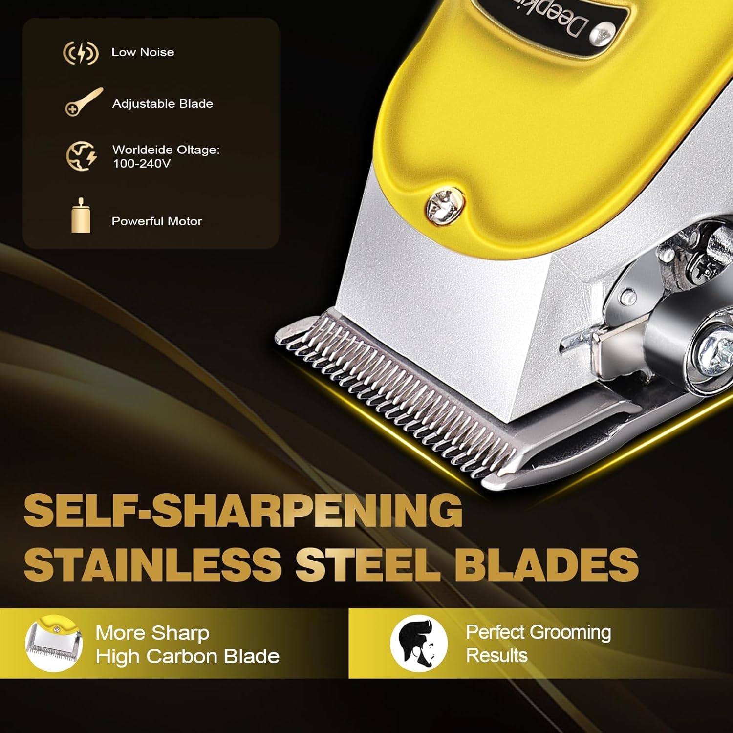 The Deepking Mens Hair Trimmer is a versatile grooming tool designed for men who want to maintain their beard and hair with ease. This adjustable blade rechargeable hair clipper features an ultra-sharp blade that allows for precise cutting and trimming. The low noise operation makes it comfortable to use, and the 9-piece men's grooming kit includes everything you need to achieve a neat and tidy look.