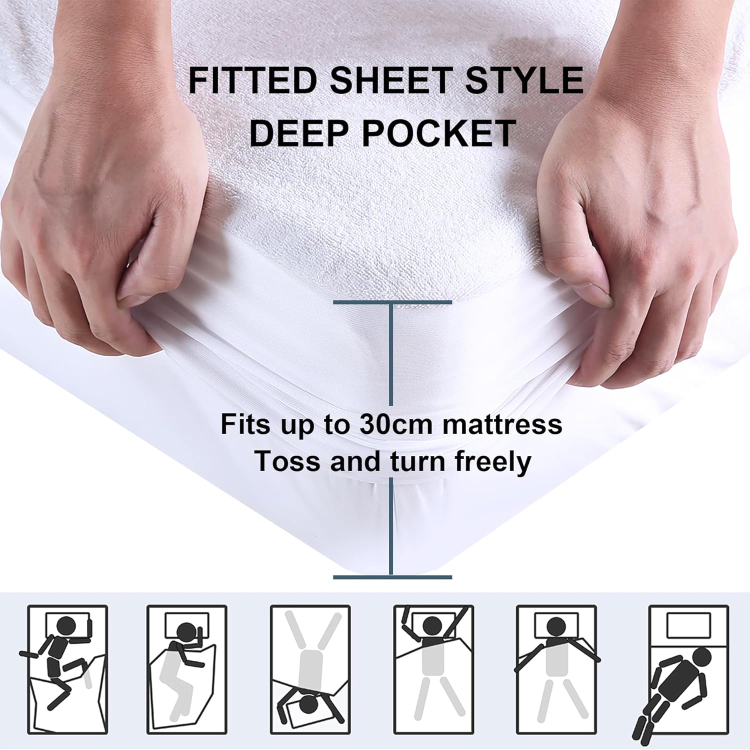 The protector features a fitted design with a 30CM deep pocket, making it easy to install and remove. It is available in king size, making it suitable for most beds.