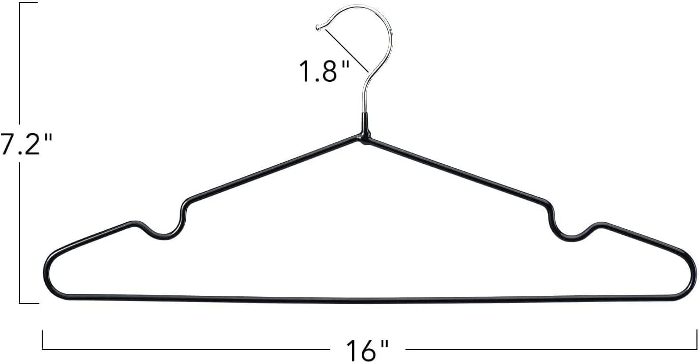 This product is a set of metal hangers with a plastic coating, designed to provide a space-saving solution for hanging clothes. The hangers are made of strong materials and have a rubber coating to prevent slipping. They are ideal for adult use and can hold heavy clothes.