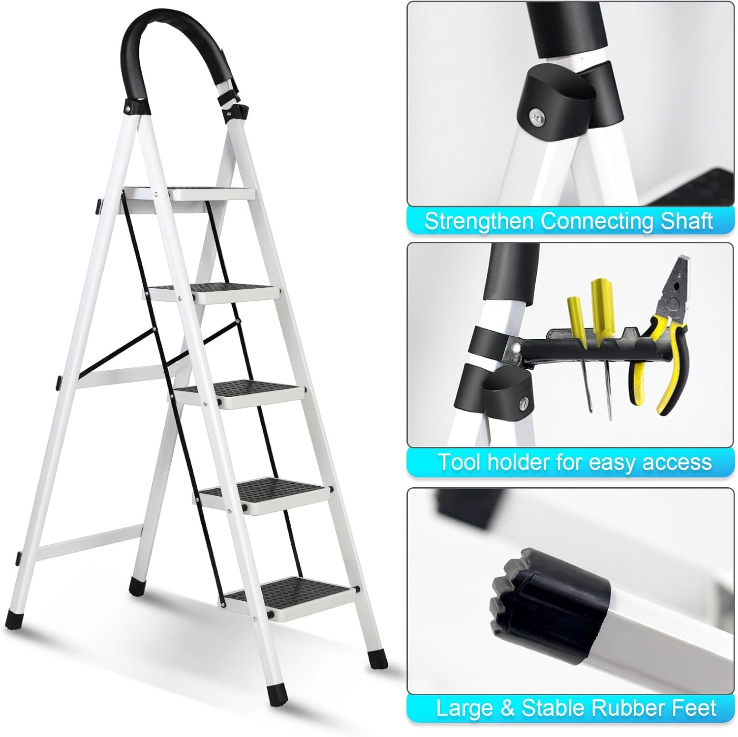 Overall, this SKY-TOUCH Foldable Ladder is a great option for anyone looking for a versatile and practical tool for various tasks. Its compact size, lightweight construction, and sturdy steel construction make it a great choice for use in a variety of locations.