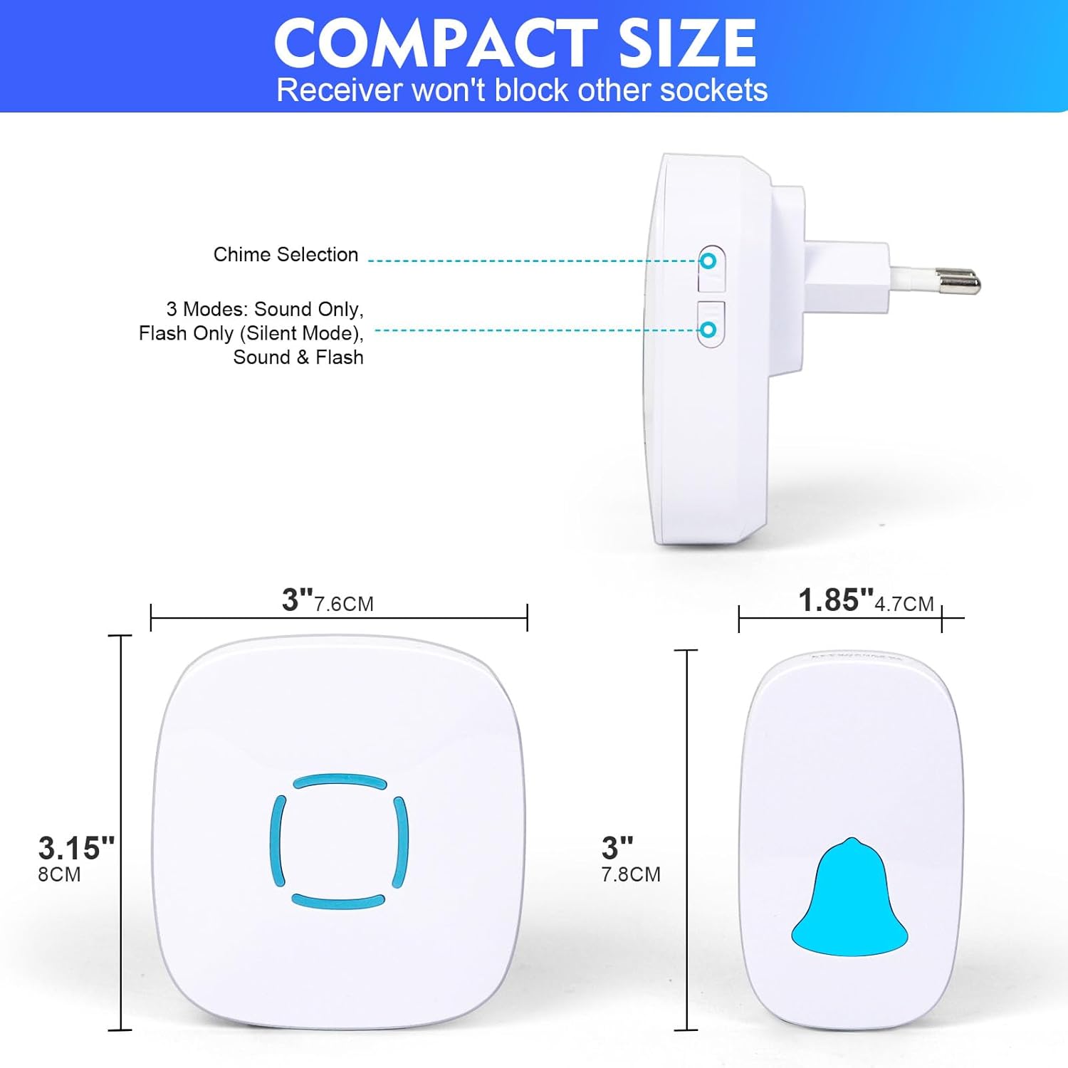 The doorbell features sound and LED home door bell chime, providing a clear and visible indication of visitors. The adjustable volume allows you to set the sound to a level that is comfortable for you, and the 36 different bells provide a range of options to suit your taste.