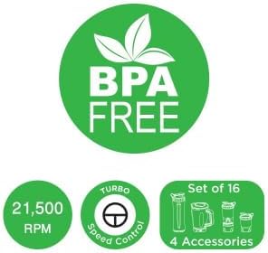 The blender comes with a 6-piece set, including 500ml and 300ml BPA-free sports bottles, making it easy to take your favorite drinks on the go. The turbo speed of 21,500 RPM ensures that your ingredients are blended to perfection, while the pulse-speed control allows you to adjust the consistency to your liking.