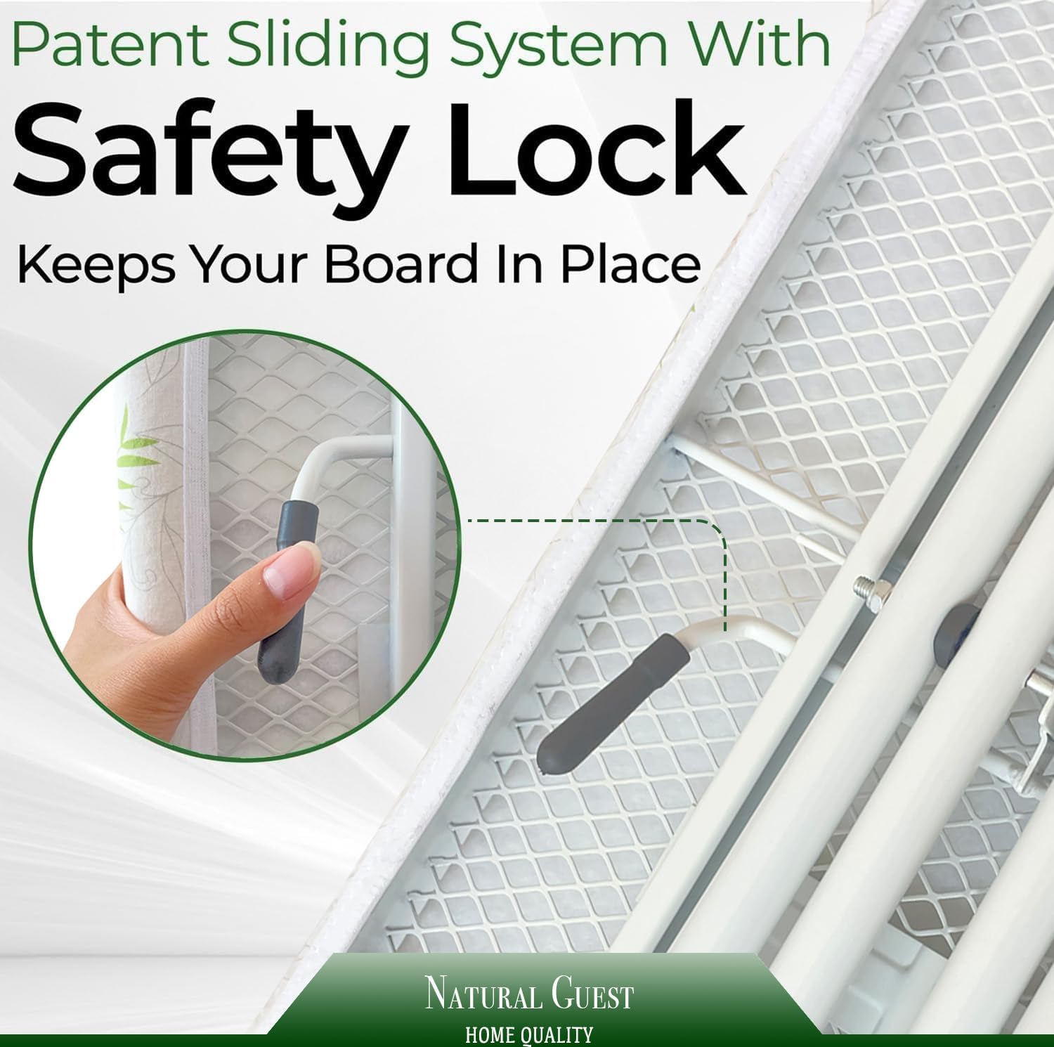 This ironing board is designed to provide a stable and comfortable ironing experience. It features a thick and stable iron tray with 7 levels of height adjustment, allowing you to iron your clothes with ease. The ironing board also comes with a 3-layer cushion, which provides a smooth and comfortable surface for ironing.