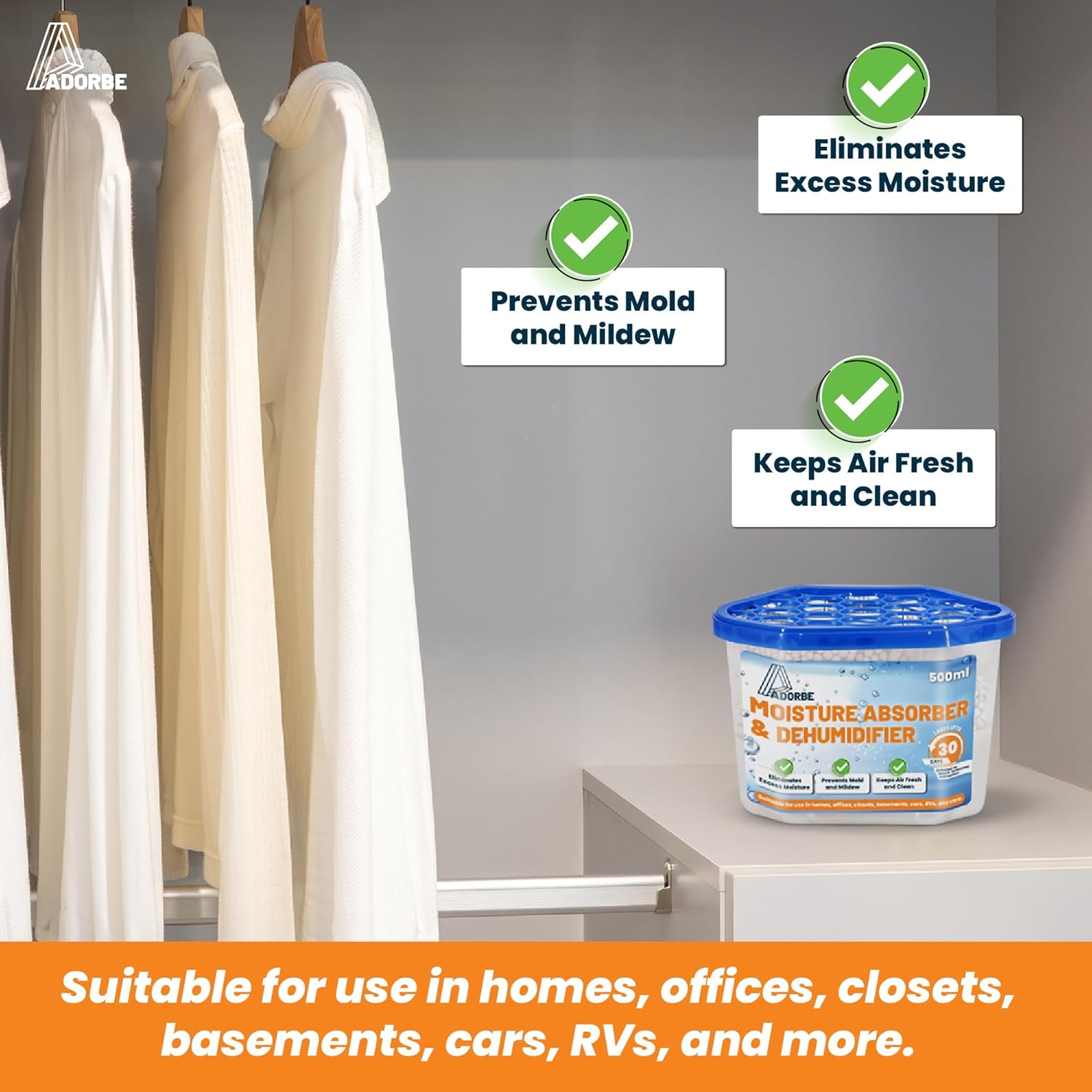 The product is designed to be used in a variety of settings, making it a versatile and practical option. It is also easy to use and maintain, providing a convenient solution for managing moisture and odors. Overall, this moisture absorber is a reliable and effective product that can help to keep your living spaces fresh and clean.