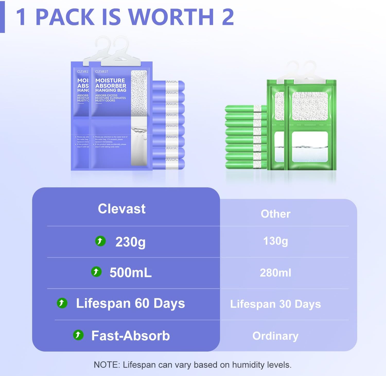 The product features a large capacity of 230g per pack, making it ideal for use in larger spaces. It is also easy to use, simply hang the packet in the desired area and let it work its magic. The packet is designed to be efficient and effective, making it a great solution for anyone looking to reduce humidity and moisture in their home.