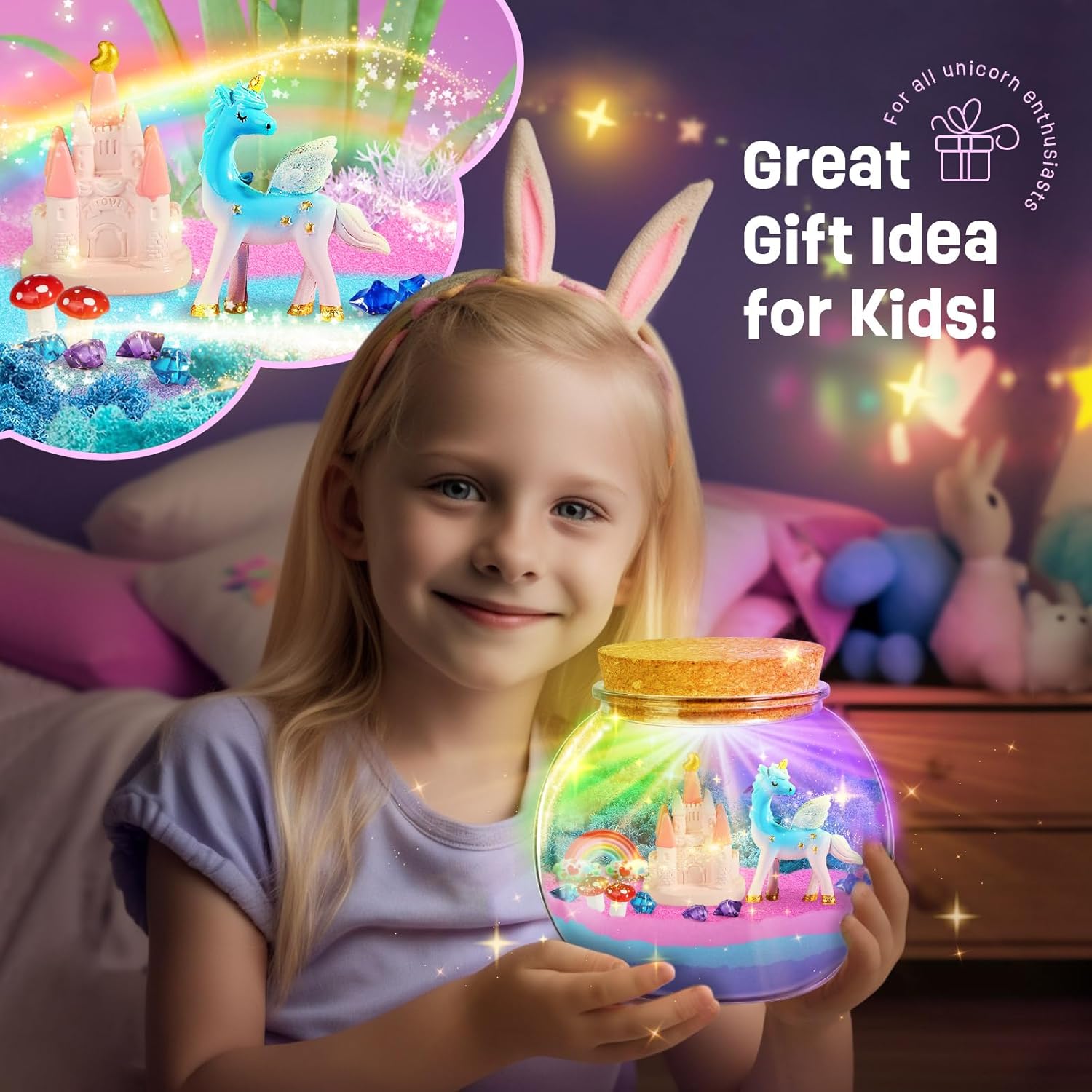 The Unicorn Terrarium Kit is a delightful gift for girls aged 4-8, perfect for birthdays or special occasions. This DIY kit allows kids to express their creativity and bring a touch of magic to their room. The kit is designed to be fun and easy to use, making it an ideal activity for kids to enjoy on their own or with friends and family.