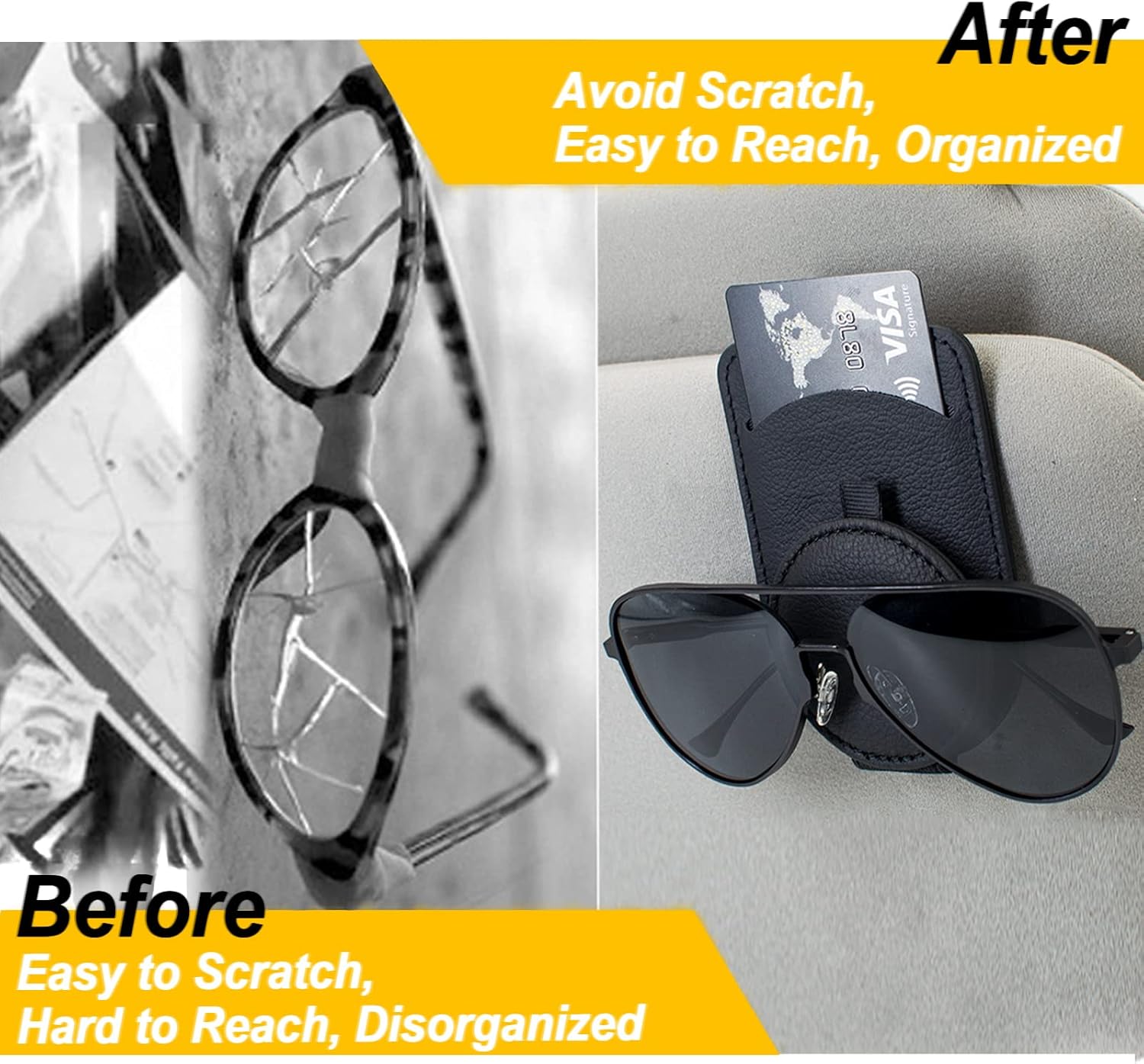 Overall, this car visor sunglass holder is a practical and convenient accessory for any car owner, providing a safe and organized place to store your glasses and other small items while driving.