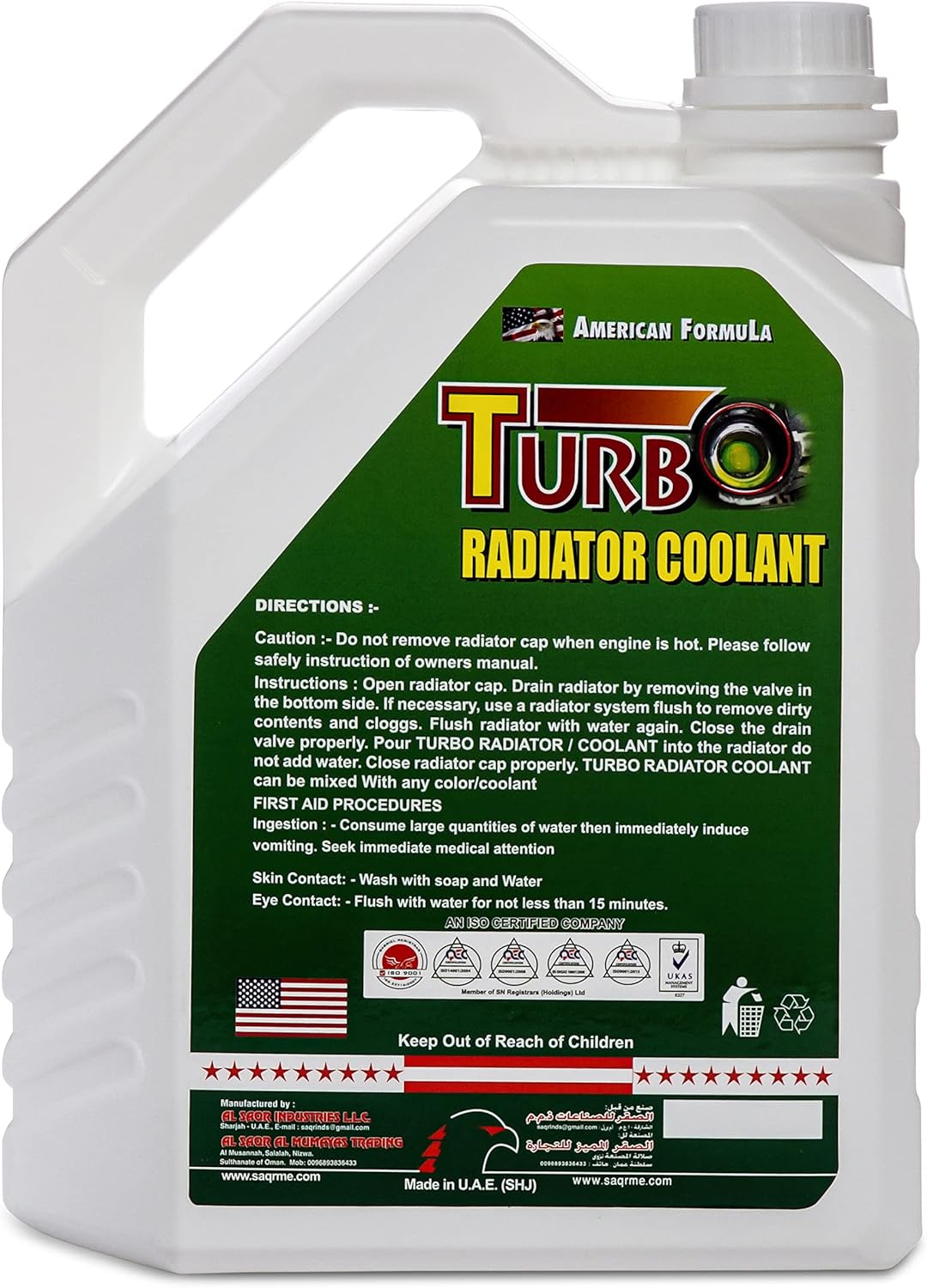 The product dimensions are 19 x 12 x 26 cm and it weighs 240 g. It is manufactured by AL SAQR IND LLC and the model number is Turbo Coolant. The item model number is TurboRadGreen and the manufacturer part number is also TurboRadGreen.